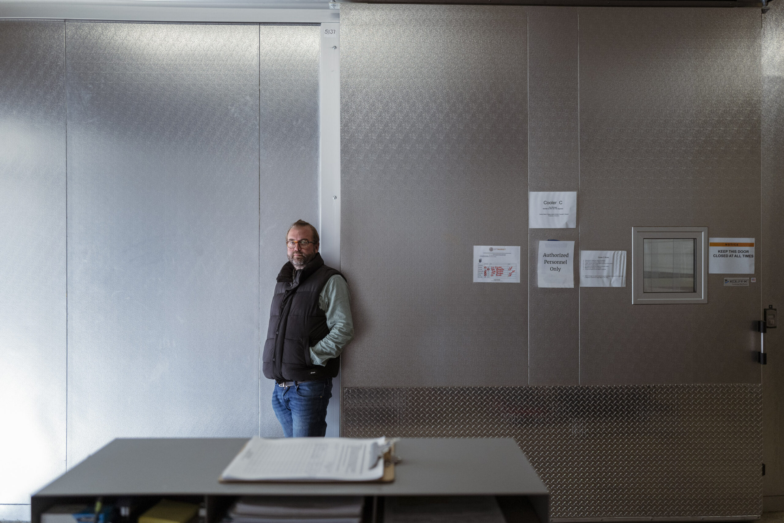 Zack Wyatt, president and CEO of Carolina Farm Trust poses for a photo in front of one of the freezers at their facility off Hoskins Road.