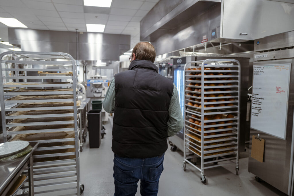 Wyatt walks through the commercial kitchen at the CFT facility.