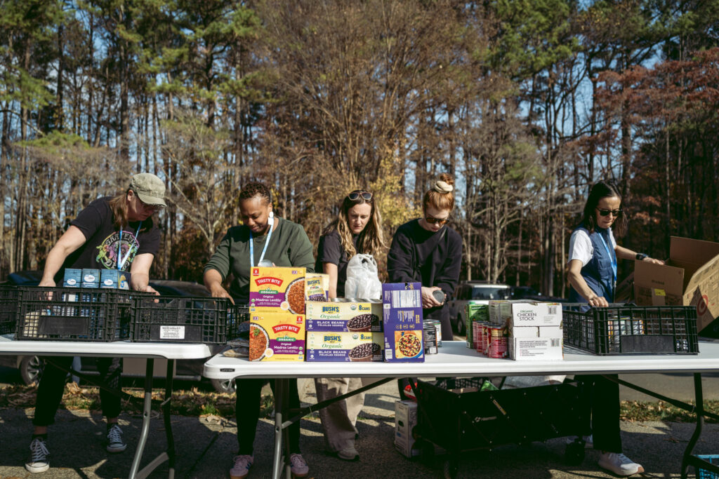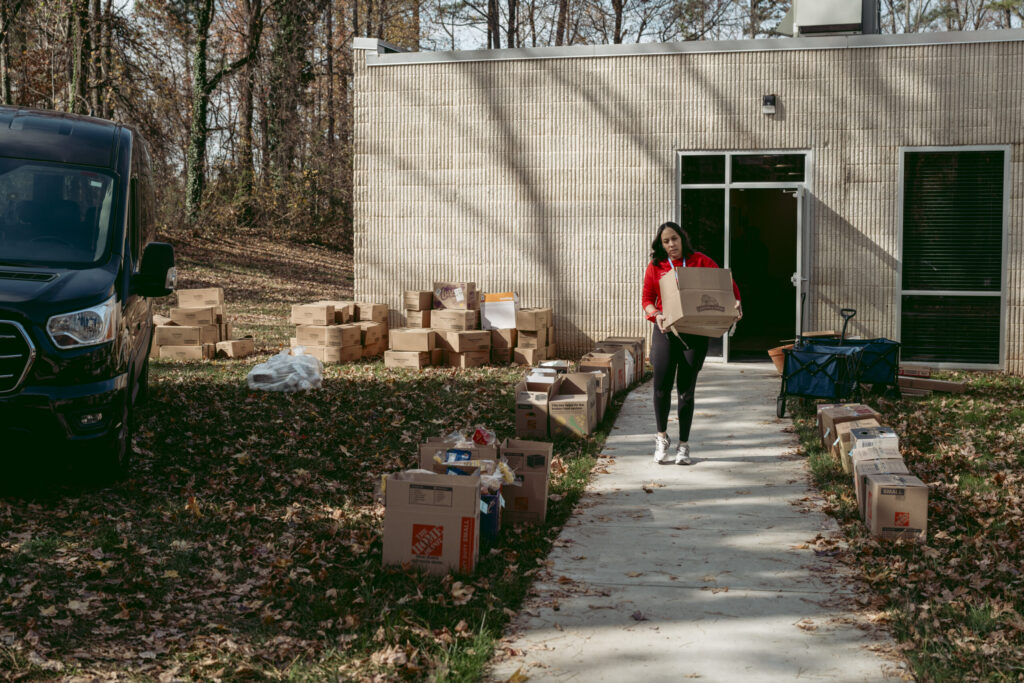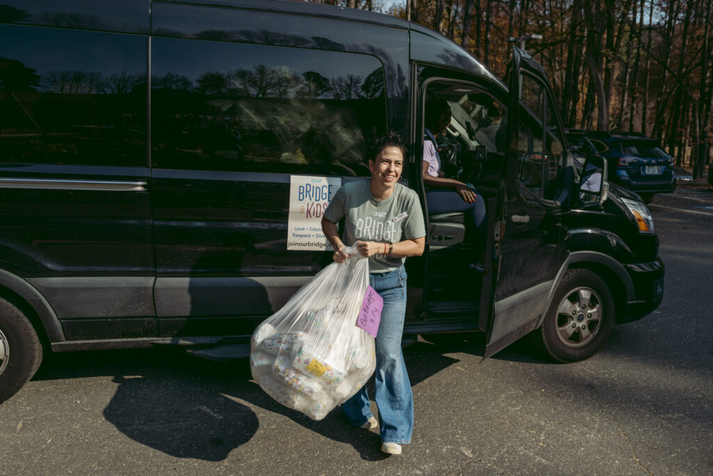A couple of miles away on Shamrock Drive, ourBRIDGE — a decade-old nonprofit that serves immigrant and refugee families, and one of the happiest places in Charlotte on the inside — shut down its afterschool program after agents tried to enter the property. They came back the next day, only to be turned away again. So ourBRIDGE focused on what it could control. It collected food and donations for families too scared to leave home. Cars wrapped around the parking lot to give.